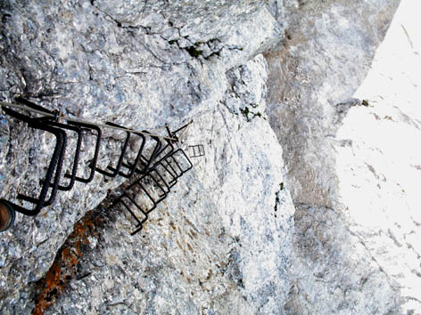 gebraucht, waren aber trotzdem gegen 15 Uhr wieder bei der Liftstation. Wirklich ein Steig für Klettersteig-Fans. Nur Eisen, fast kein Gehgelände, eine Steilstufe mit Eisenklammern, und das Ganze auf 500