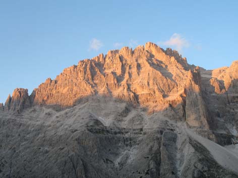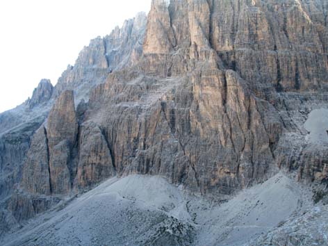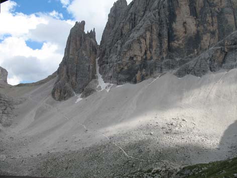 welches sich nach Norden öffnet. Im wesentlichen muss man dieses Schuttkar abfahren, weil der Weg den Namen nicht wirklich verdient. Diese Schottertour dauert, weil das Kar ca. 250 Höhenmeter überwindet,