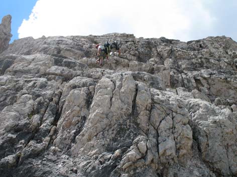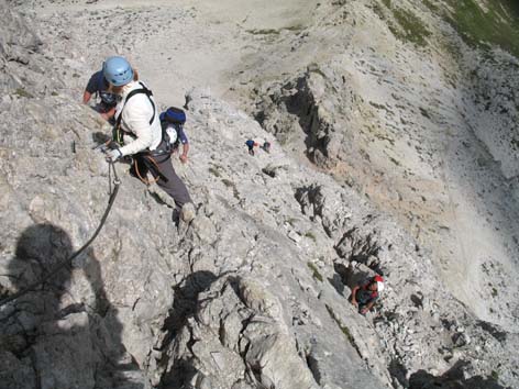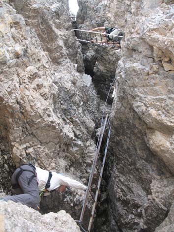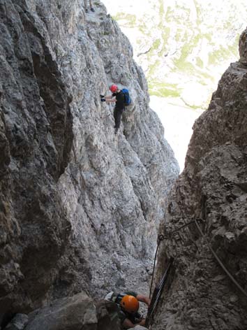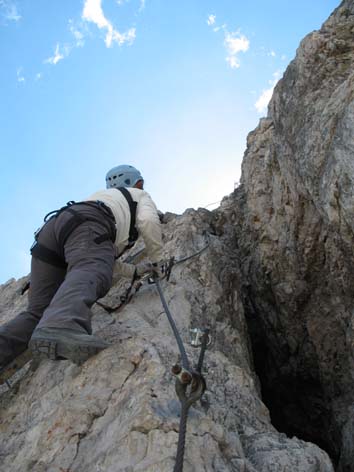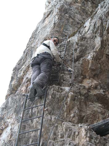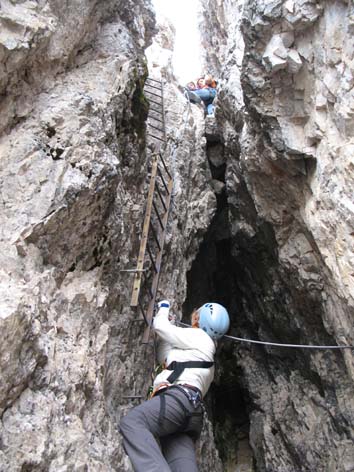 genießen. 17 Leitern hinauf, an Drahtseilen noch einfach hinab. Macht viel Spaß. Wir haben insgesamt gemütliche 2 Stunden von Hütte zu Hütte gebraucht.