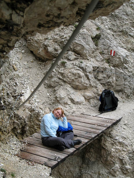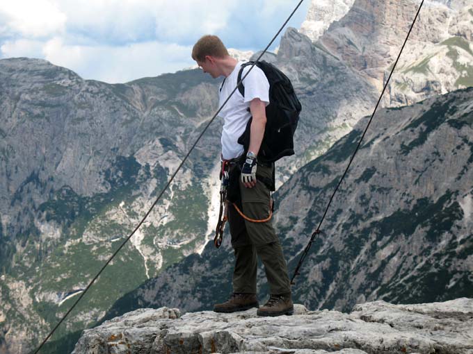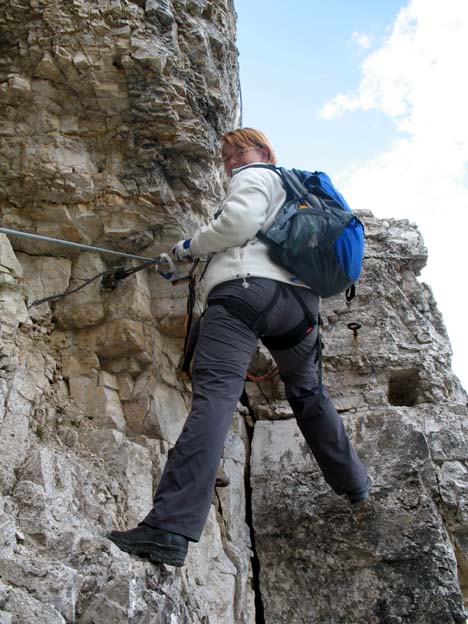 Ein paar Tage später haben wir uns entschieden, den Pionierweg zu erkunden, und den Hauptmann-Bilgeri-Klettersteig zu begehen. Also, rauf auf den Pioniersteig, an hölzernen