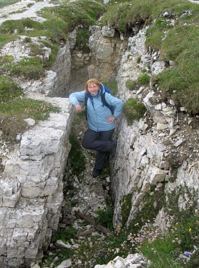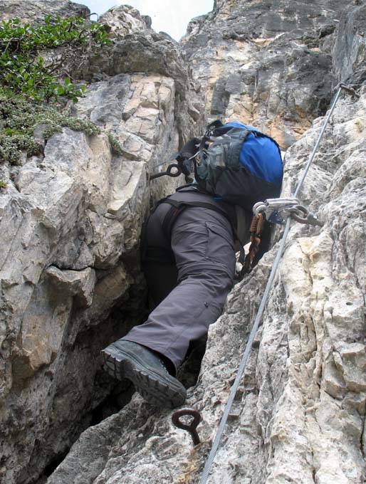 Resten aus dem Krieg nochmal rasten, und dann beginnt der Bilgeri-KS, Schwierigkeit C, nach Hüsler K2.